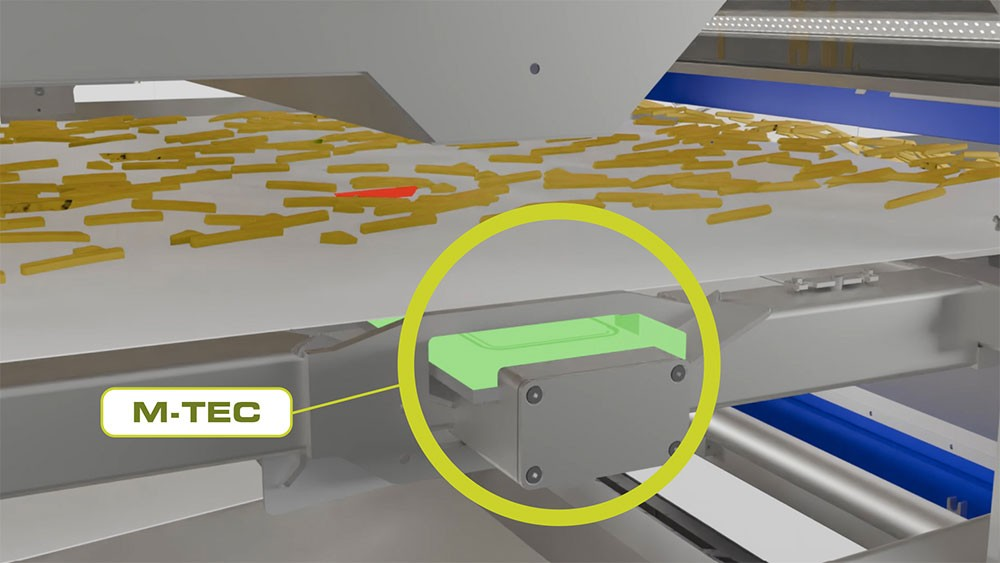 S-TEC模块可实现对每根薯条底部的稳定检测,最终完成六面全检。该模块采用专利设计,将高性能RGB相机与旋转式自清洁系统相结合,确保稳定呈现清晰成像效果。通过对薯条底部进行精细检测,可大幅降低缺陷漏检风险,进一步提升产品合格率。